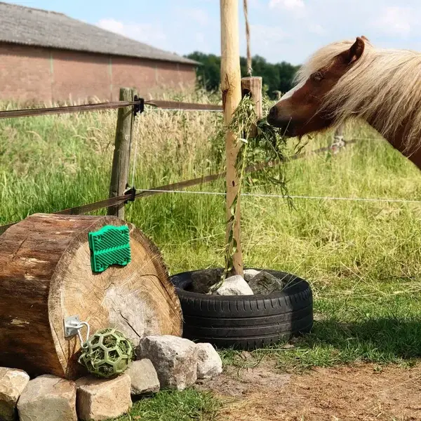 Gebruik het meegeleverde touw om de Smulstaaf op te hangen in stal, paddock, track of weide. - Afwisselen loont